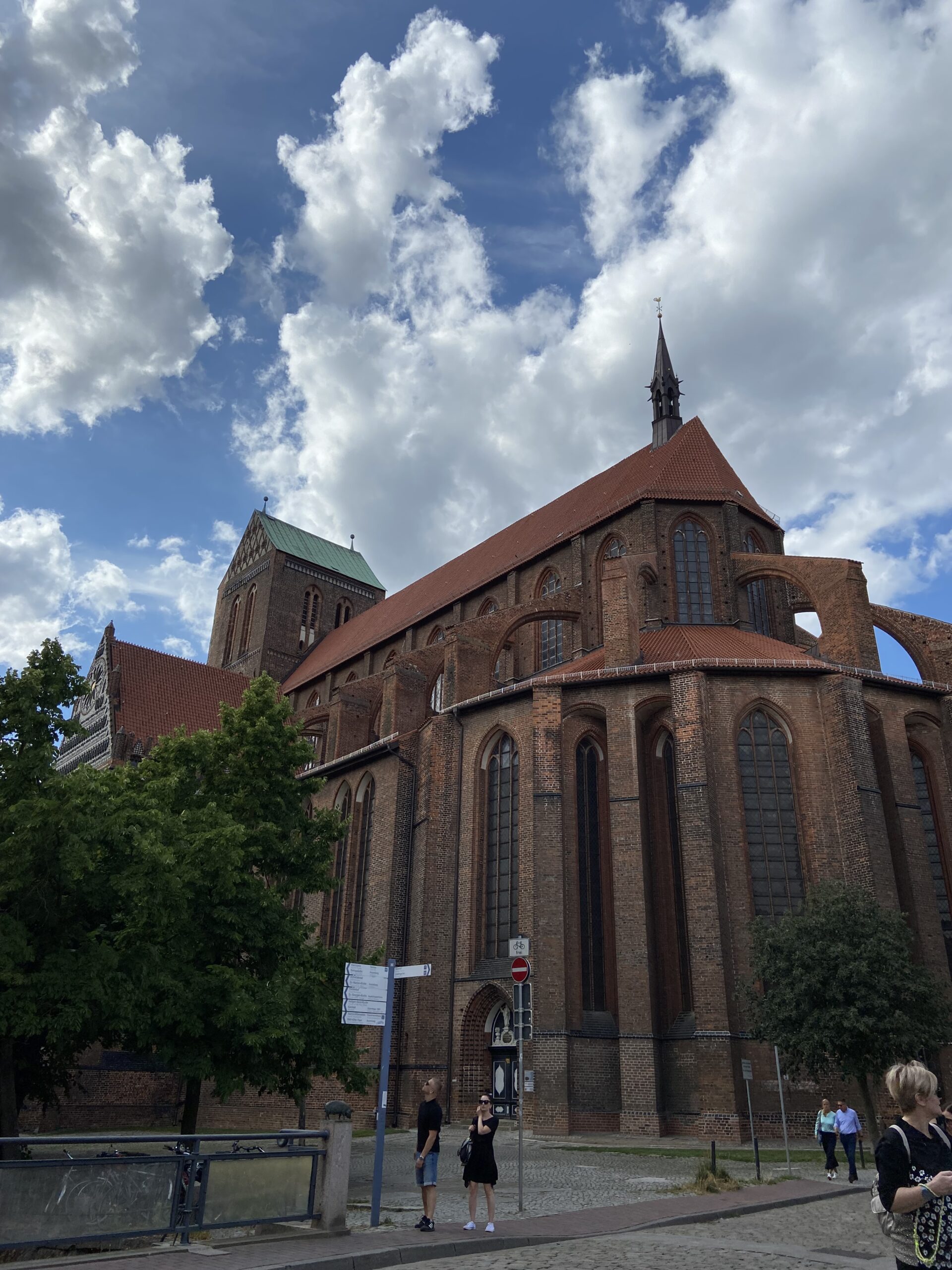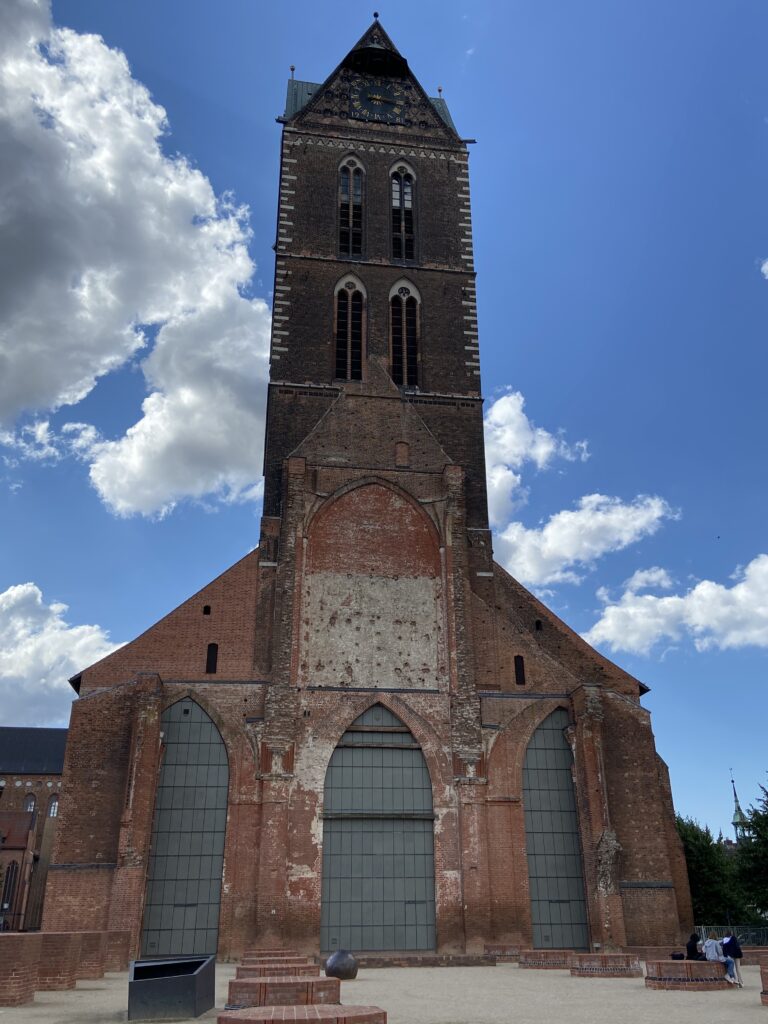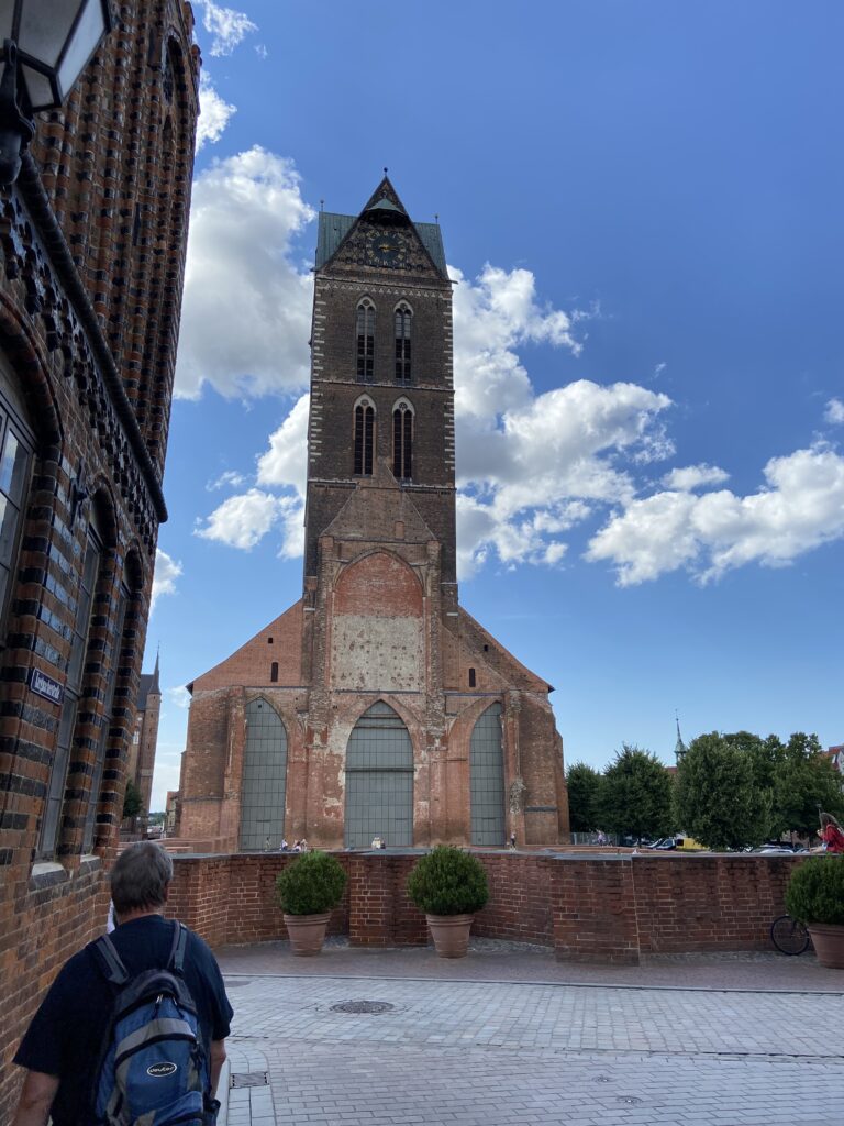 Ziel war heute Wismar, eine ca. 2 Stunden entfernt liegende Hansestadt. Deshalb war auch frühes Aufstehen angesagt – was allerdings die innere Uhr erfolgreich ignoriert hat und wir schon mal mit einer halben Stunde Verspätung aufgestanden sind. Wismar ist eine recht schöne Stadt, die einen Besuch lohnt, ist Weltkulturerbe und voller alter Häuser und 3 (gotischen Backstein-) Kirchen. (bzw. 2 plus 1 Turm).
