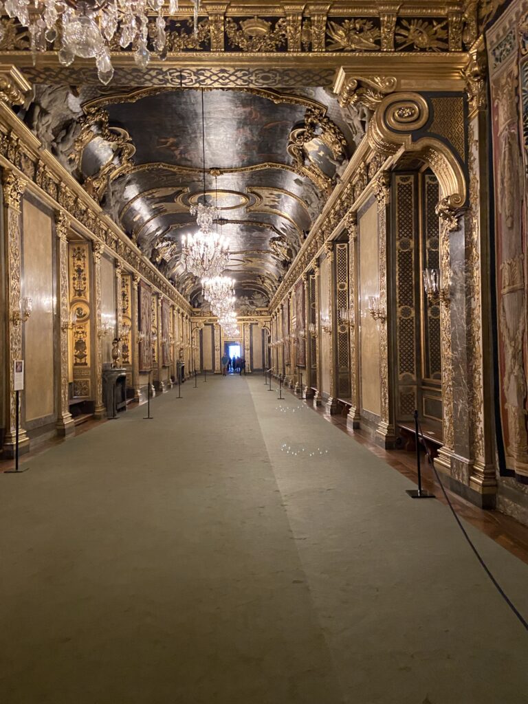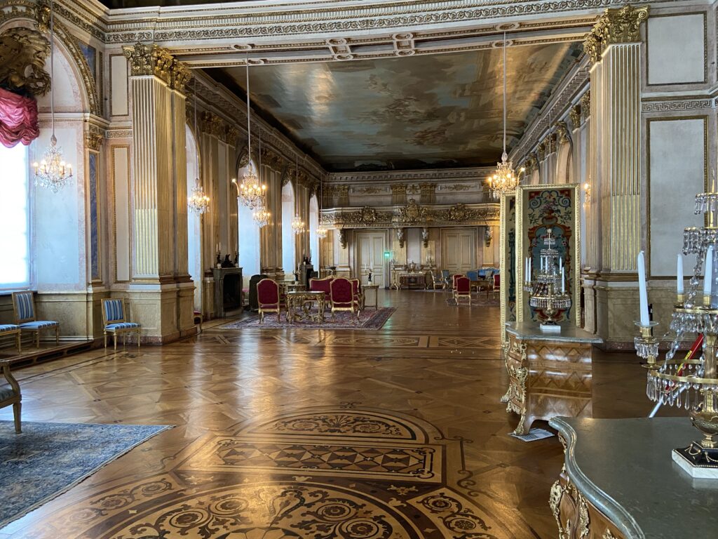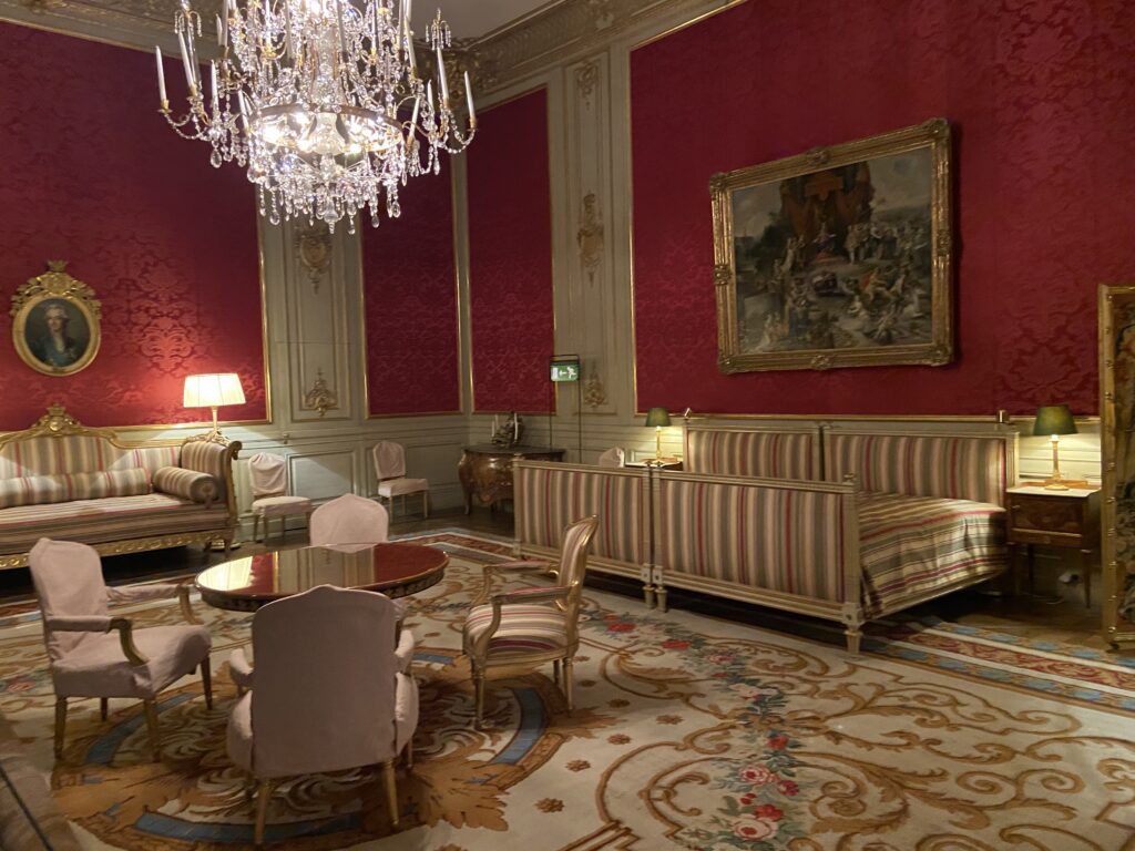 Die Räume werden heute noch benutzt und wenn zB ein Staatsbesuch ansteht, werden die Absperrungen entfernt (ich nehme mal an, dass auch geputzt wird 😊) und das Staatsoberhaupt darf auf dem Bett des 1.Bildes schlafen. Das dazugehörige Badezimmer existiert wohl, war aber nicht Teil des Museums. Aber mal ehrlich: würdet ihr da schlafen wollen? Ich fände es gruselig: die Räume sind sehr hoch, ich vermute mal sehr stark, dass die Fenster geschlossen bleiben müssen, weil sonst der Personenschützer durchdreht, alles knarzt und die Steckdosensituation dürfte ungenügend sein.