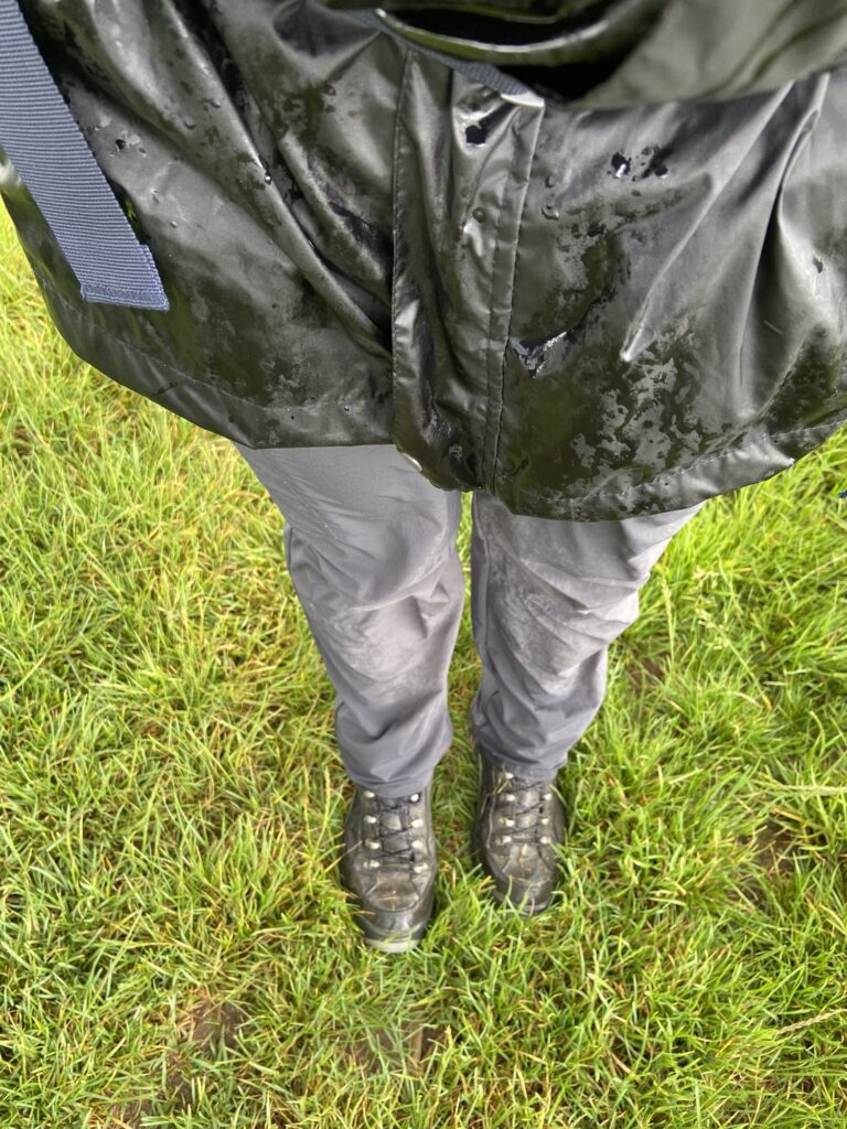 Bei diesem kurzen Schauer sind wir nass bis auf die Haut geworden – das Wasser lief uns die Beine runter in die Schuhe, Hose, Unterhose, TShirt, Jacke und Regenjacke waren nass, es war kalt und unsere Laune auf dem Tiefpunkt.
