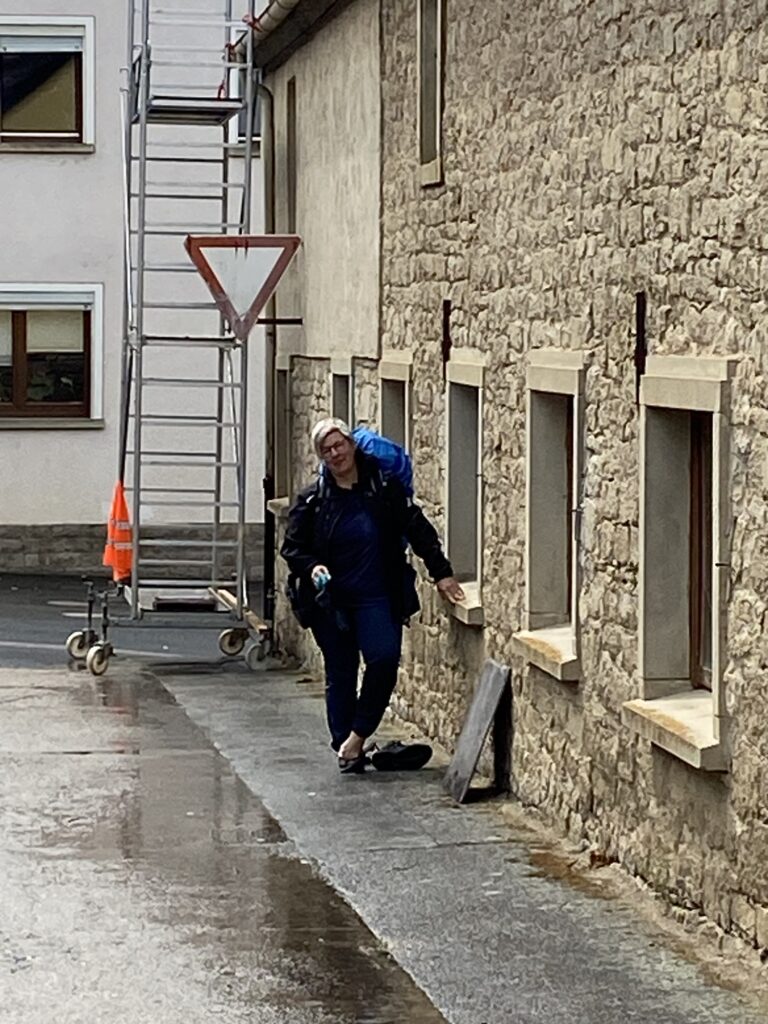 20,7 km, 34.000, trockene Kleidungsstücke: null (!!!), Blasen an den Füssen: eine kleine an der rechten Ferse, momentane Bewegungsfähigkeit oder -willigkeit: null ☹️, von der Hüfte abwärts tut alles weh und ist angestrengt