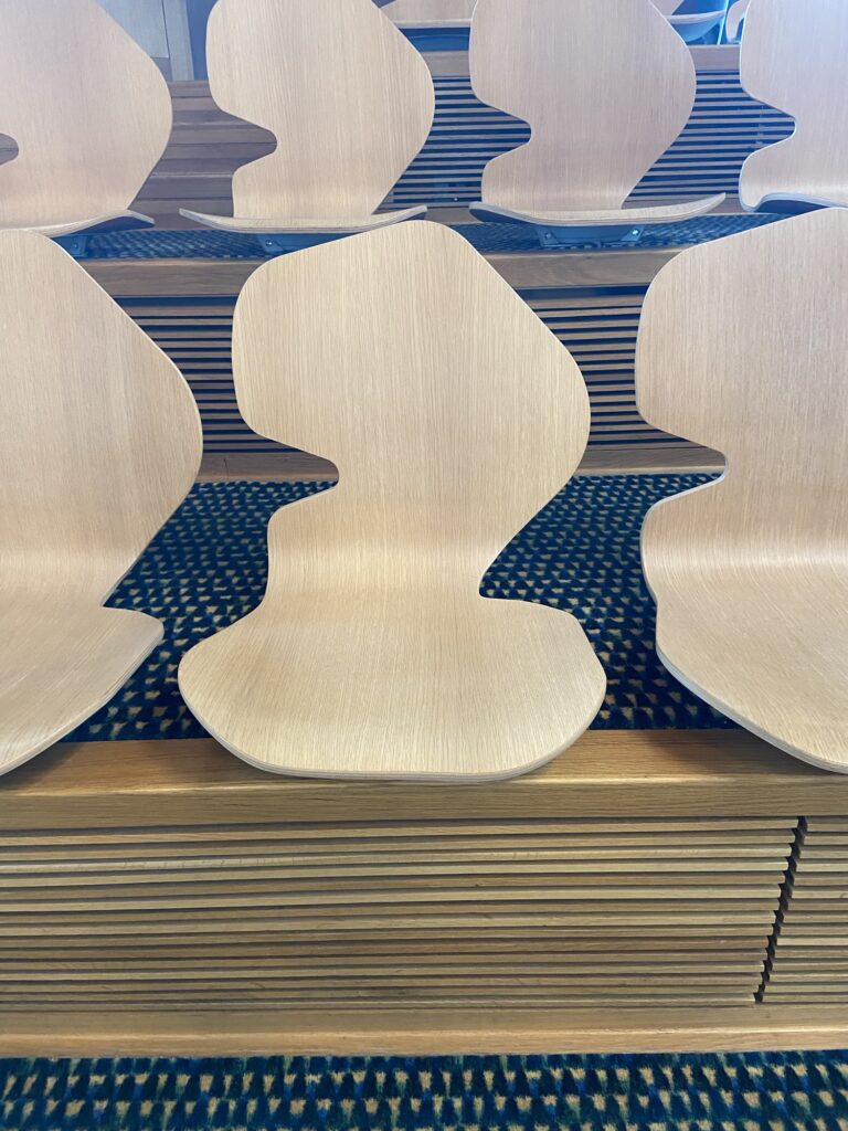Stühle im Schottischen Parlament sind der Form Schottlands nachempfunden