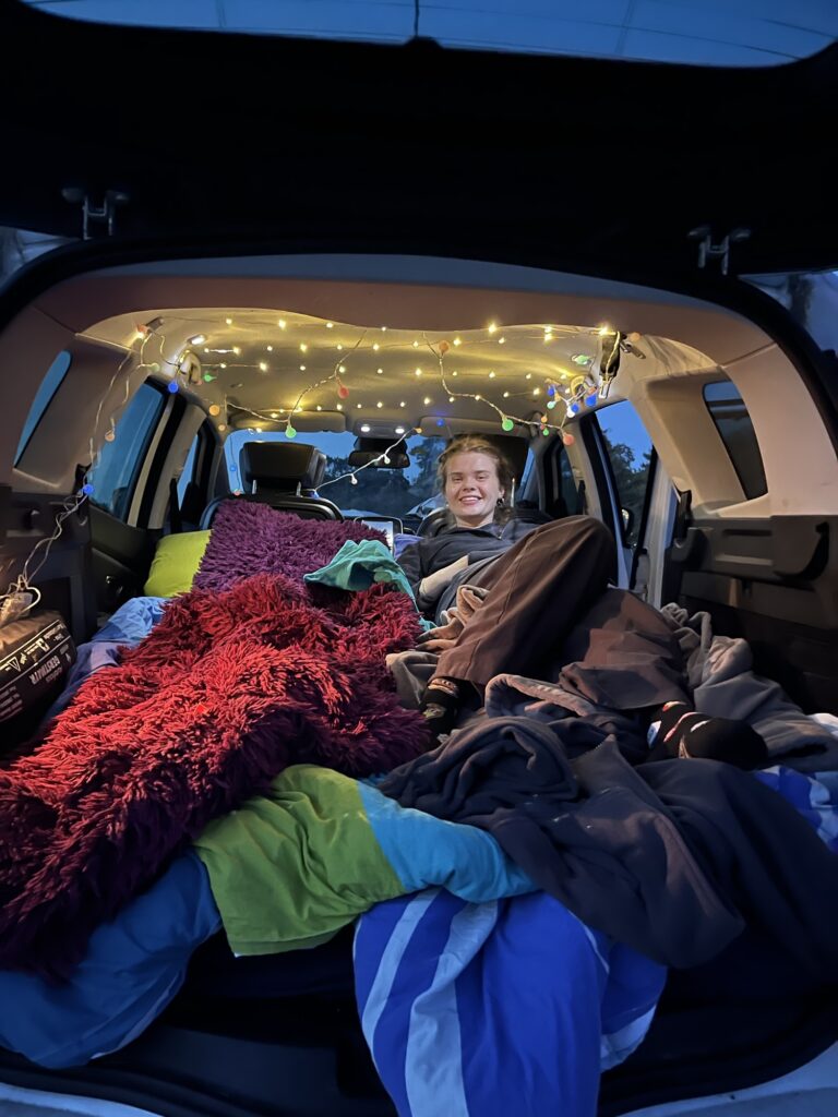So schlafen übrigens die Mädchen – inklusive Lichterkette 😊