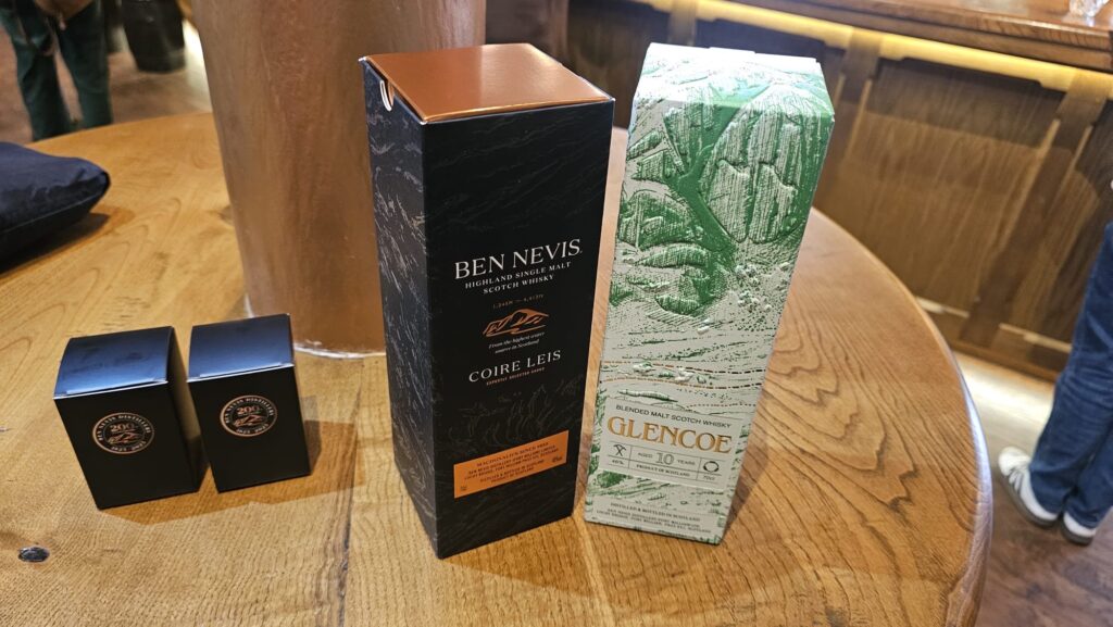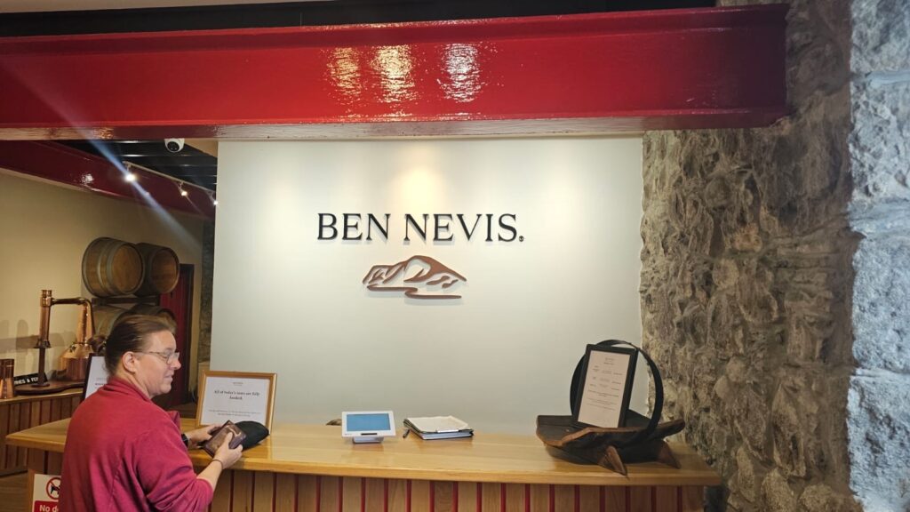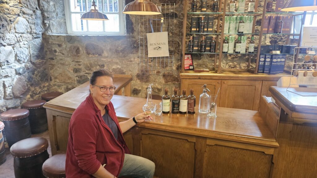Mal wieder eine Whiskey Destillery – seufz – und zwar wieder um frühen Morgen, um 12 Uhr. Wir haben am Fuße des Ben Nevis gefrühstückt und haben unsere „Zelte“ abgebrochen und Monster und Auto gepackt. Die Mädels haben sich eine erneute Destillerie geschenkt und sind lieber shoppen gegangen, während es für mich zur Ben Nevis (wie sollte dieser Whiskey auch sonst heißen???) Destillerie ging. Und – oh Wunder – die stellen den Whiskey doch genau so wie Talisker her. Uns wurden zum Teil auch die gleichen Geschichten erzählt: es gab einen Maschinenhersteller, von dem alle schottischen Destillerien eine Maschine gekauft haben zum Mahlen des Korns. Blöd nur, dass die Maschinen qualitativ so hochwertig sind und kaum Ersatzteile brauchen, so dass der Maschinenhersteller insolvent wurde und es in ganz Großbritannien nur noch 2 Leute gibt, die diese Maschinen warten können – und die wohnen nicht in Schottland. Wer ich einen Tipp abgeben müsste, dann würde ich sagen, dass die beiden nicht schlecht verdienen 😊